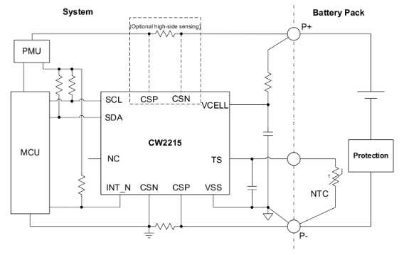 单节锂电池电量计CW2215的工作电流仅为5μA,是业内最低,内置高精度ADC,支持电压、电流和温度监测。芯片内置“FastCali”算法,结合对客户电池样品建模测试提取的电池特征参数,可完成对电池剩余电量(SOC)、循环数(Cycle)和电池健康(SOH)的精确计算,并可配置对低电量、高温或低温的情况进行中断上报。CW2215为WLCSP-9封装,尺寸为1.58mm*1.53mm。